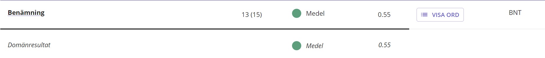 Benämning: Antalet korrekt benämnda ord inom tidsgränsen för respektive ord.