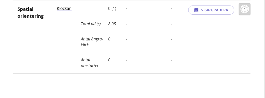 Via detaljerat resultat: klicka på Visa/Gradera under Klocktest i tabellen för Visuospatial funktion