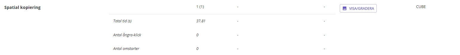 Genom att klicka på Visa/Gradera vid Kubtest i tabellen för det detaljerade resultatet under Visuospatial funktion.